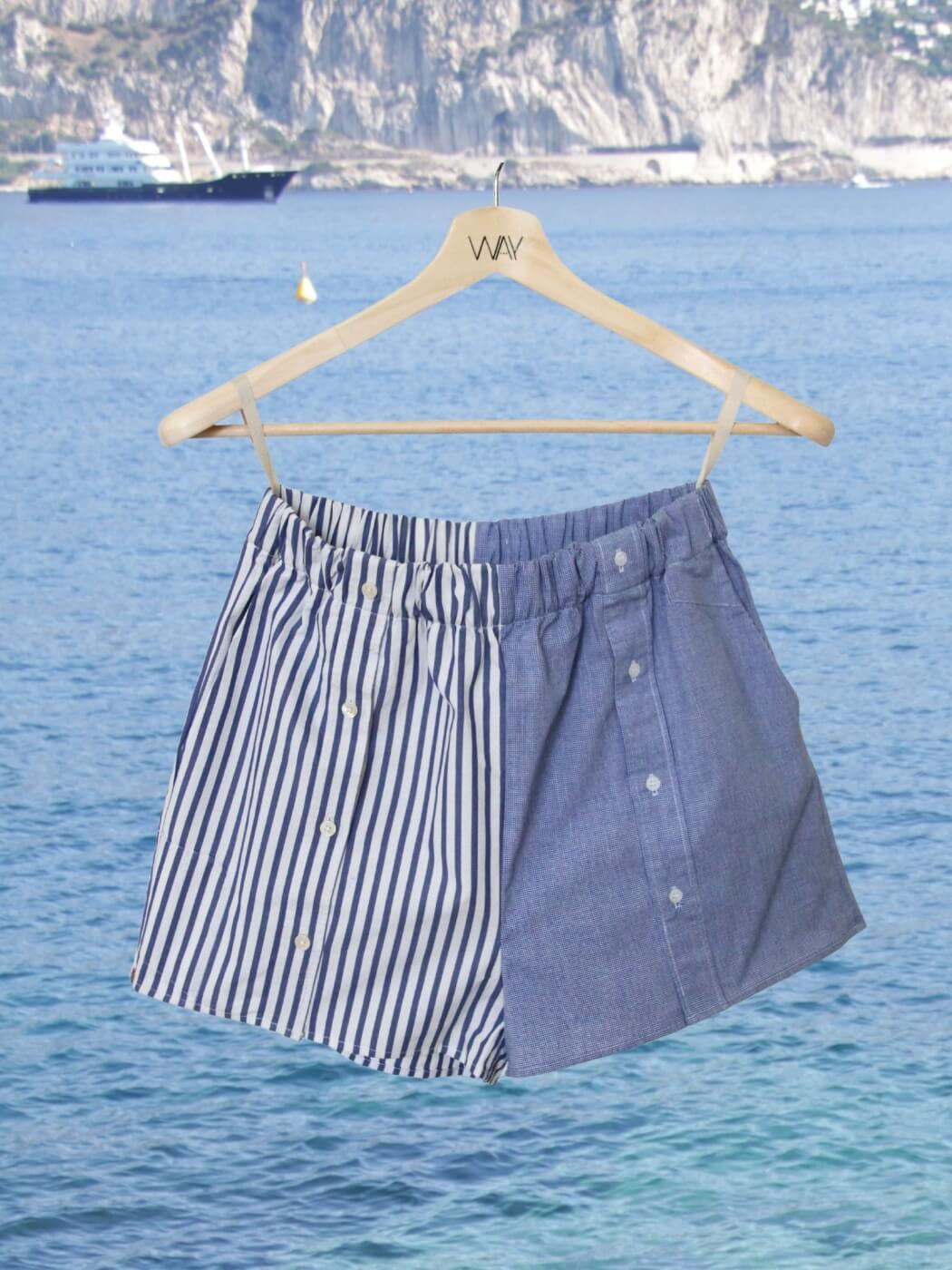 Loose fitted shorts with button down detail on the front and elastic waist for a comfortable fit. Made from two carefully selected vintage men’s shirts. Complete the look with SUN Shirt or SUN Crop Shirt.