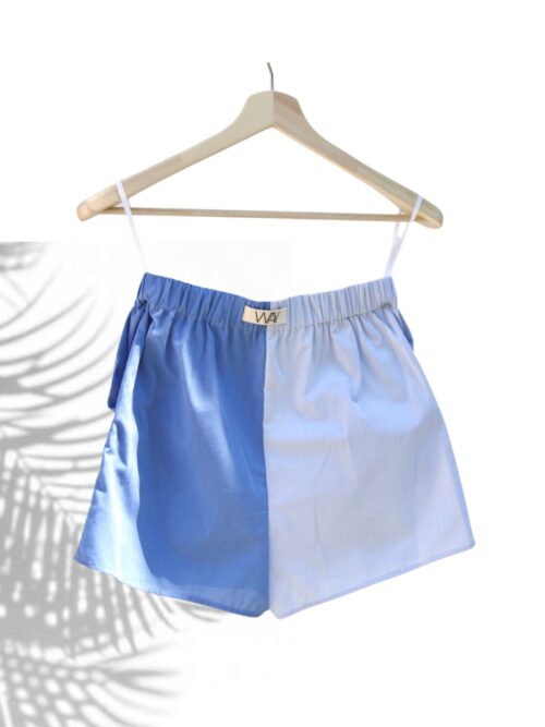 Loose fitted shorts with button down detail on the front and elastic waist for a comfortable fit. Made from two carefully selected vintage men’s shirts. Complete with SUN